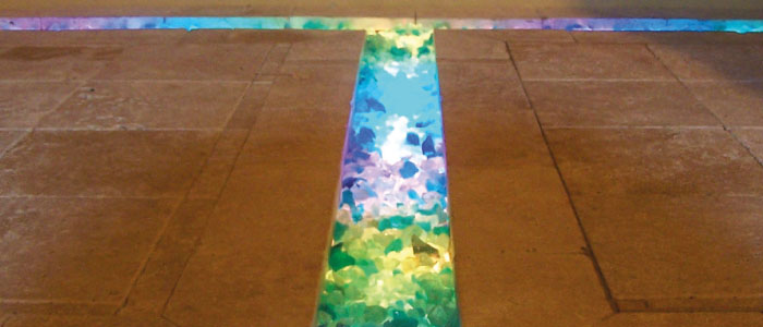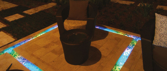 Our Galaxy Rocks™ can provide a striking lit groundcover. Galaxy Rocks™ can provide the permanence you seek. The rainbow of colors available in the Galaxy Rock™ along with our LED products is unprecedented in multi applications. Dry river beds, fountain accents, flagstone fillers, paver aggregates, rock gardens, bar countertops, fire place, center pieces ect and floor art.
