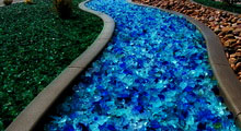 A collection of vibrant colored glass crystals or "glass rocks" that will INSTANTLY TRANSFORM YOUR OUTDOOR FIRE PIT INTO A SPARKLING SHOWPIECE.